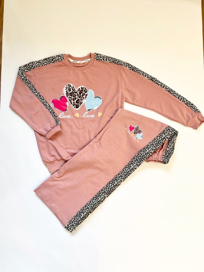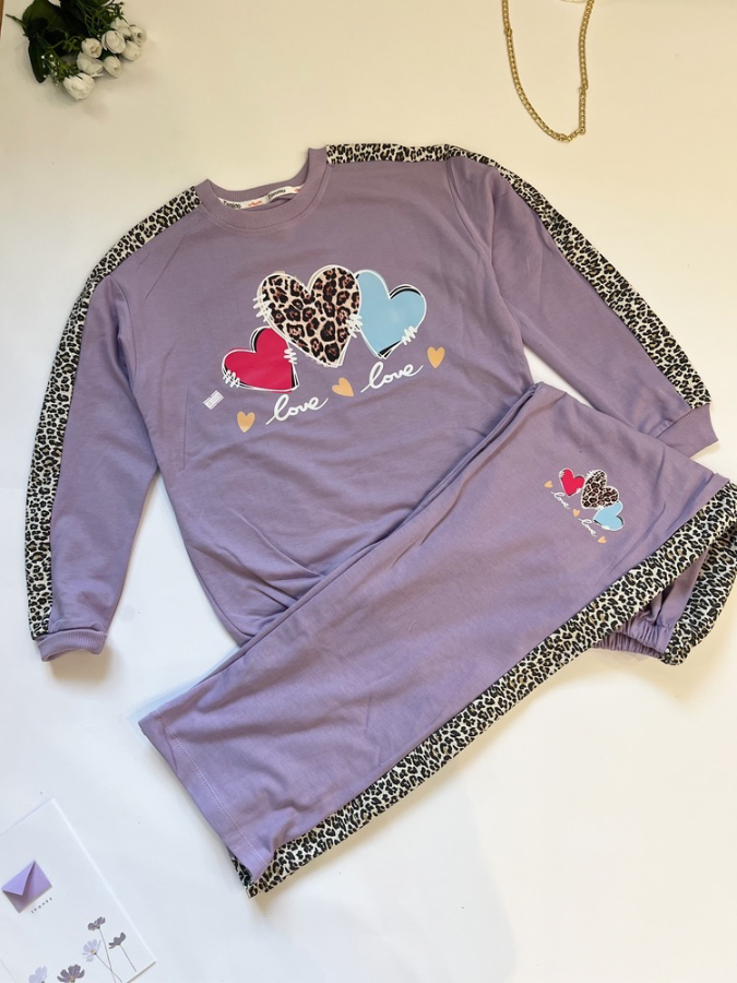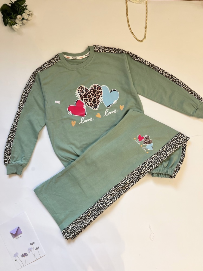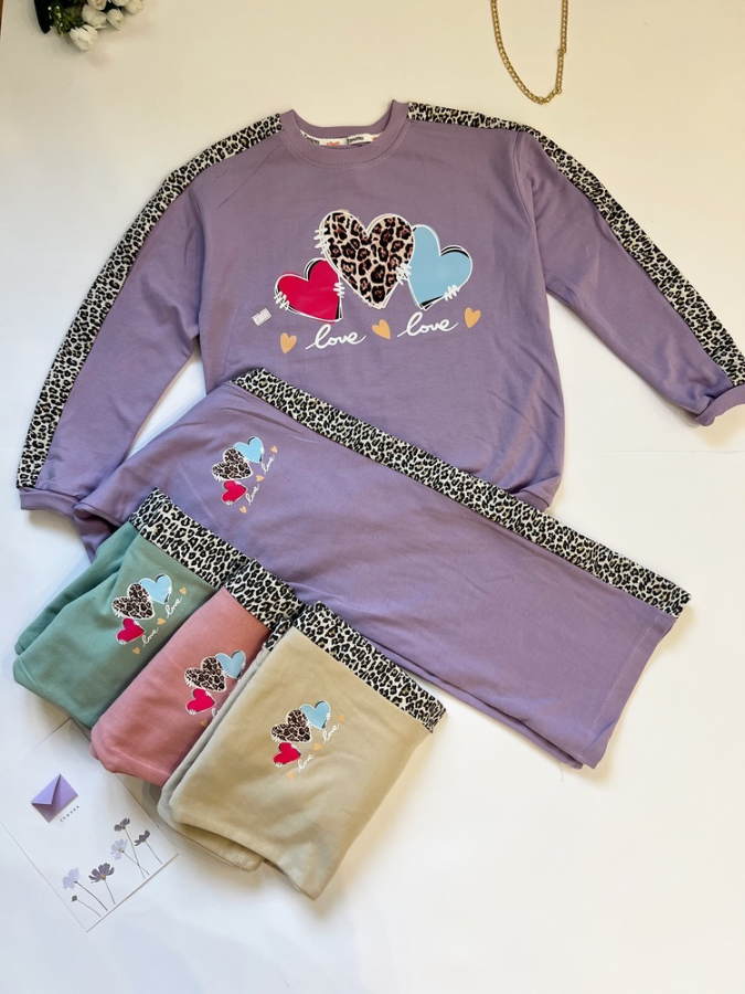 ست بلوز و شلوار طرح قلبی دخترانه