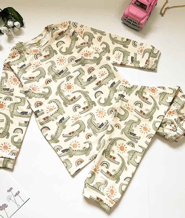 ست بلوز و شلوار راحتی پسرانه طرح تمساح عینک دار